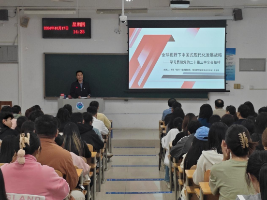 为深入学习贯彻党的二十届三中全会精神,提升公司师生政治理论素养,根据公司党委统一部署,10月17日下午,党的创新理论“笃行”宣讲团成员、财经管理公司党总支书记马金伟在1103教室为公司师生宣讲党的二十届三中全会精神,公司全体教师和120余名员工代表参会。