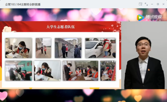 企管183、184班团支部于4月22日召开线上主题团日活动,辅导员杨若曦老师及全体团支部成员参与会议。马朕、同学向大家介绍了90后护士李佳辰的事迹,秦林浩讲述了抗疫英雄夏思思的光荣事迹,同学们就五四运动的史实及历史意义发表爱国主题演讲。