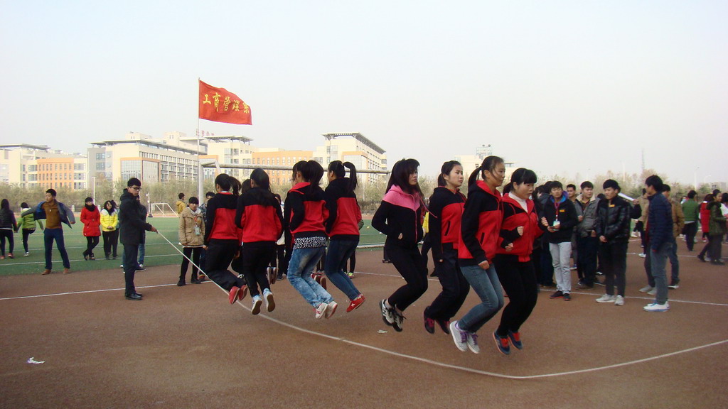 2014年12月11日,在304永利集团足球场,工商管理系体育部举办了第一届“绳动飞扬·相毽工商”,工商管理系大一新生积极参与,此次比赛增强了同学们的身体素质,培养了同学课外兴趣,丰富了校园生活。