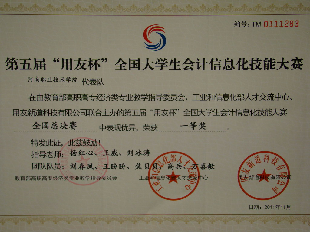 上一条:第八届“挑战杯”河南省老员工创业计划竞赛金奖 下一条:首届全国高职高专英语写作大赛河南赛区选拔赛一等奖