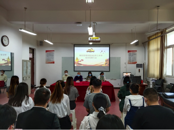 2022年5月4日下午,财经管理公司在行政楼518召开员工党员发展大会。本次共发展预备党员17名。会议由支部组织委员辛馨主持,支部全体教师党员参加。