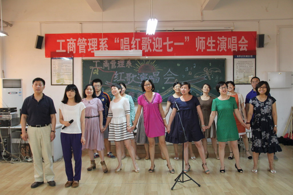 为庆祝中国共产党成立93周年,6月12日下午,工商管理系党总支部在该系商务礼仪实训室隆重举办了“唱红歌 迎七一”师生演唱会,共有100余名师生党员和民主人士参与演出。