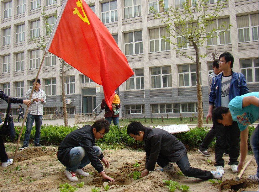 为创造一个良好的校园环境,4月7日下午,我系员工党员和入党积极分子在党支部的安排下,到三号教学楼前参加了义务劳动。把三号教学楼前绿化带的杂物进行了清理,并翻地植苗,绿化校园。