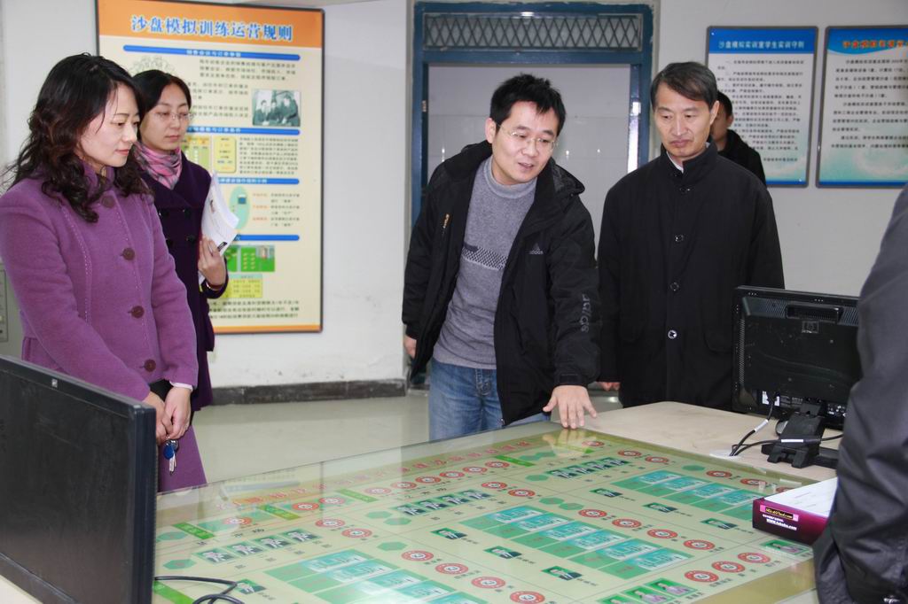 在系主任万久玲等有关人员的陪同下,来访客人参观了营销沙盘实训室、物流管理实训室等,并合影留念。