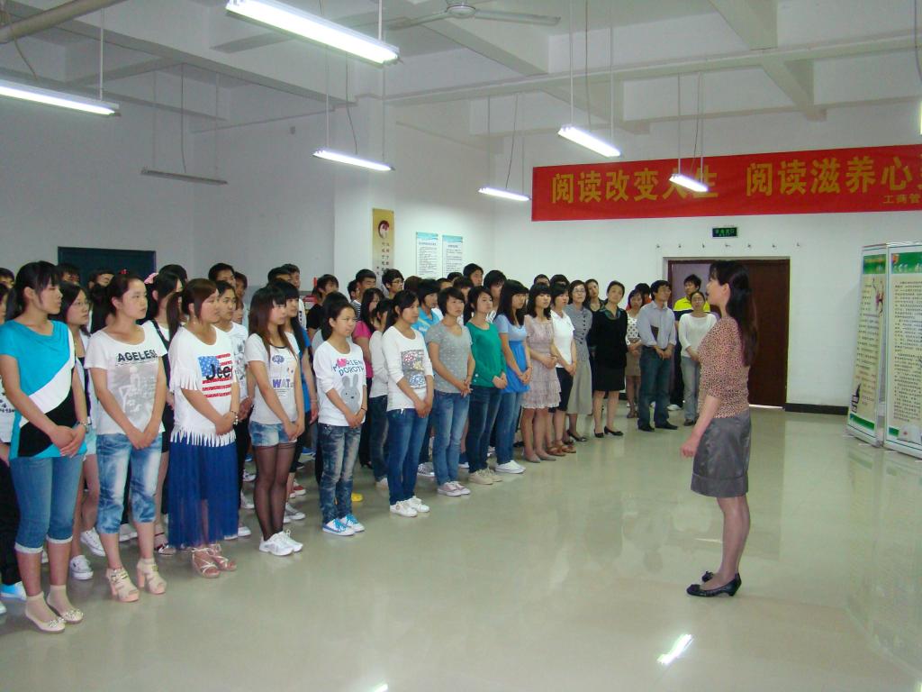 5月12日下午,工商管理系“书香工商”读书活动开幕式在实训中心隆重举行。系领导和100余名师生代表参加开幕式。 开幕式上,系主任万久玲强调了读书的重要性,勉励大家要珍惜难得的机会,多读好书,扩宽视野,增强能力,磨砺意志,丰富个人阅历。党总支书记李相勤说明了此次活动的意义和目的,要求师生应把读书当作生活的一部分,养成“终生学习”的习惯,要处处留心阅读“社会”这本无字之书。 “书香工商”读书活动是该系“老员工活计划”系列活动的一个重要组成部分和创新点,为全系师生推荐100本经典作品,引导师生学习与继承全世界各民族、各时期、各领域的优秀文化,完善知识结构、提高审美情趣,让一路芸芸书香,伴随员工健康成长,使阅读成为校园文化的重要组成部分。