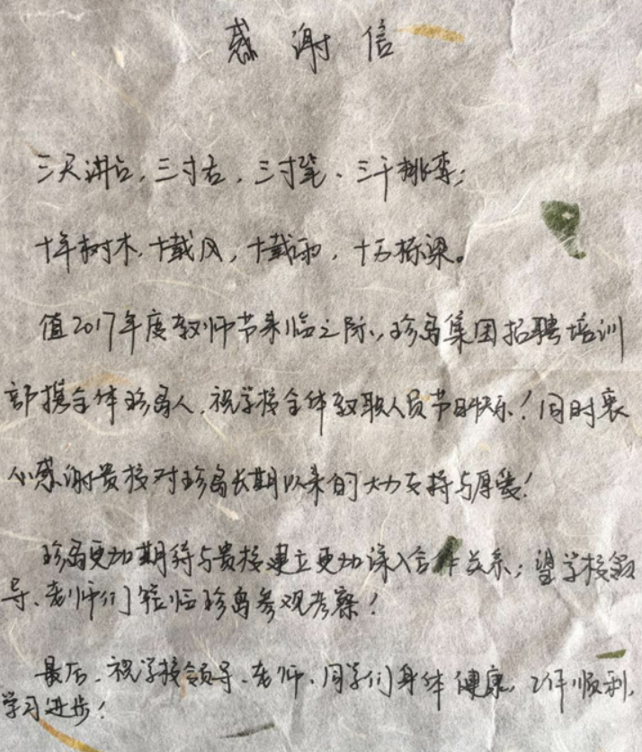 金风送爽,丹桂飘香。在第33个教师节到来之际,我系校企合作单位珍岛集团向我系发来教师节慰问信,向全系教职工致以诚挚的节日问候和祝福;对我系多年为企业不断输送优秀人才表示衷心感谢,并赠送锦旗。
