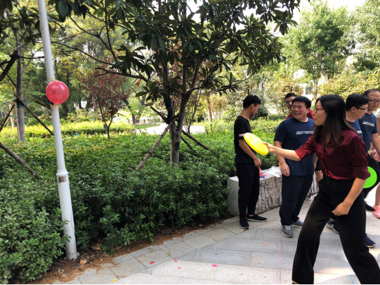 此次比赛活动由304永利集团领导担任评委,全院按教研室及行政部门共分为7组参赛队,每队6至8人。比赛要求首先以掷飞盘为传递方式进行接力,如果发生掉落必须在该环节捡起后重新飞掷,随后待小组最后一人接到飞盘后,在2米远的距离投掷飞盘击破固定在柱子上的气球,最后统计全程所用时间,最短者获胜。