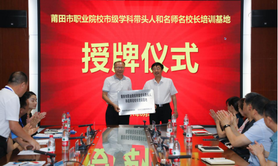 随后,莆田市教育局高校与职成教科科长陈明华代表莆田市教育局对公司承办此次培训活动表示感谢,并授予公司“莆田市职业院校市级学科带头人和名师名董事长培训基地”牌匾。深圳市卫国教育有限公司总经理郑振华向公司培训导师发放了导师邀请函。
