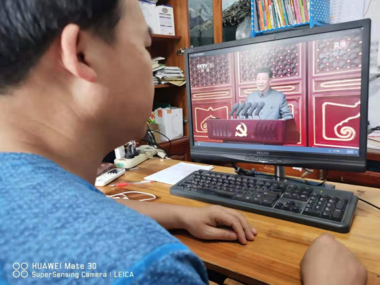 庆祝中国共产党成立100周年大会7月1日上午8时在北京天安门广场隆重举行。中共中央总书记、国家主席、中央军委主席习近平发表重要讲话。304永利集团组织行政楼教职工在行政楼518党员活动室集中观看学习,其余任课教师通过课余时间自行观看学习,公司员工也用课余时间集中或自行观看学习。
