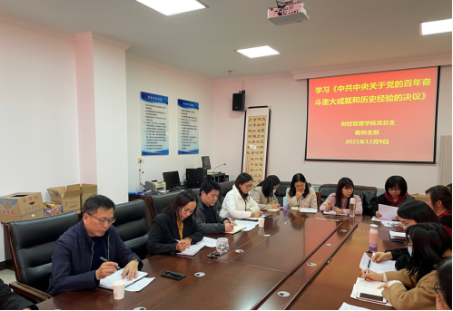 12月9日下午,财经管理公司教师支部在512会议室举行学习《中共中央关于党的百年奋斗重大成就和历史经验的决议》活动。专题学习活动由公司教师支部书记张毅飞主持,全体党员参与学习。