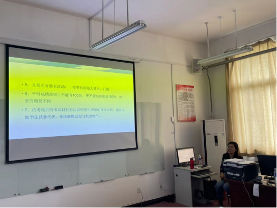 会上,教研室全体教师就试卷命题要求、批阅要求、审核要求以及试卷管理的具体要求进行了全面交流,重新规范了试卷命题细节,同时,参会教师也就试卷管理、试卷命题等具体问题提出了针对性意见和建议。通过此次交流大家认识到今后试卷工作不能流于形式,要充分认识试卷分析的重要性,努力提高试卷命题质量。