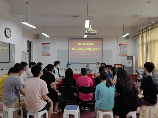 为更好地了解毕业生思想动态与现实状况,倾听毕业生心声,表达财经管理公司对毕业生的深情关怀和美好祝福,2022年6月10日上午,公司在行政楼518举办了2022届毕业生座谈会,财经管理公司领导班子、辅导员及返校的20多名毕业生代表参加了座谈会。