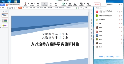2022年12月1日下午,财经管理公司大数据与会计、大数据与审计两个教研室全体专职教师就本专业新版人才培养方案的科学实施问题进行线上专题研讨活动。