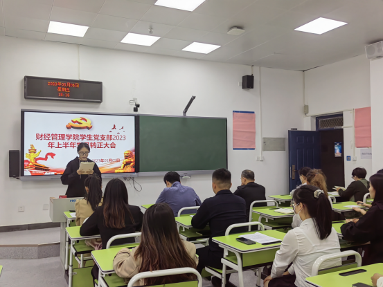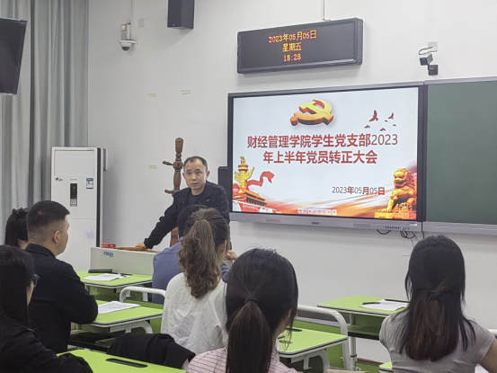 为推进党的建设,保持党员的先进性和纯洁性,努力打造一支高素质的党员队伍,2023年5月5日财经管理公司员工党支部在3202教室召开了预备党员转正会议,讨论冯坤等17名预备党员的转正问题。财经管理公司员工党支部张文龙书记及支部全体教师党员参加了此次会议。