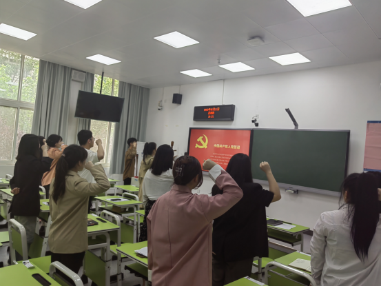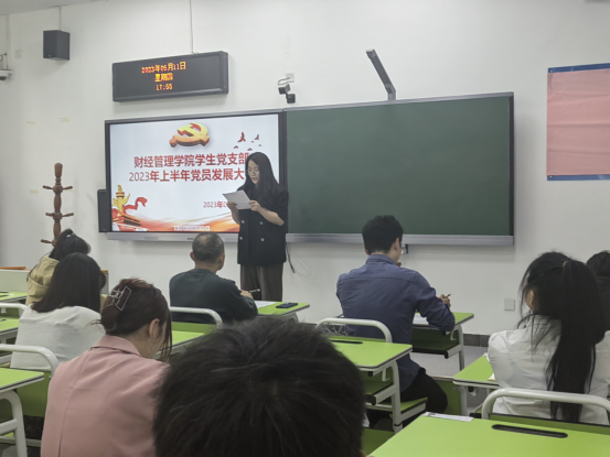 2023年5月11日下午,财经管理公司在3202教室召开了员工党员发展大会。会议由支部组织委员辛馨主持,支部全体教师党员参加,共发展预备党员12名。