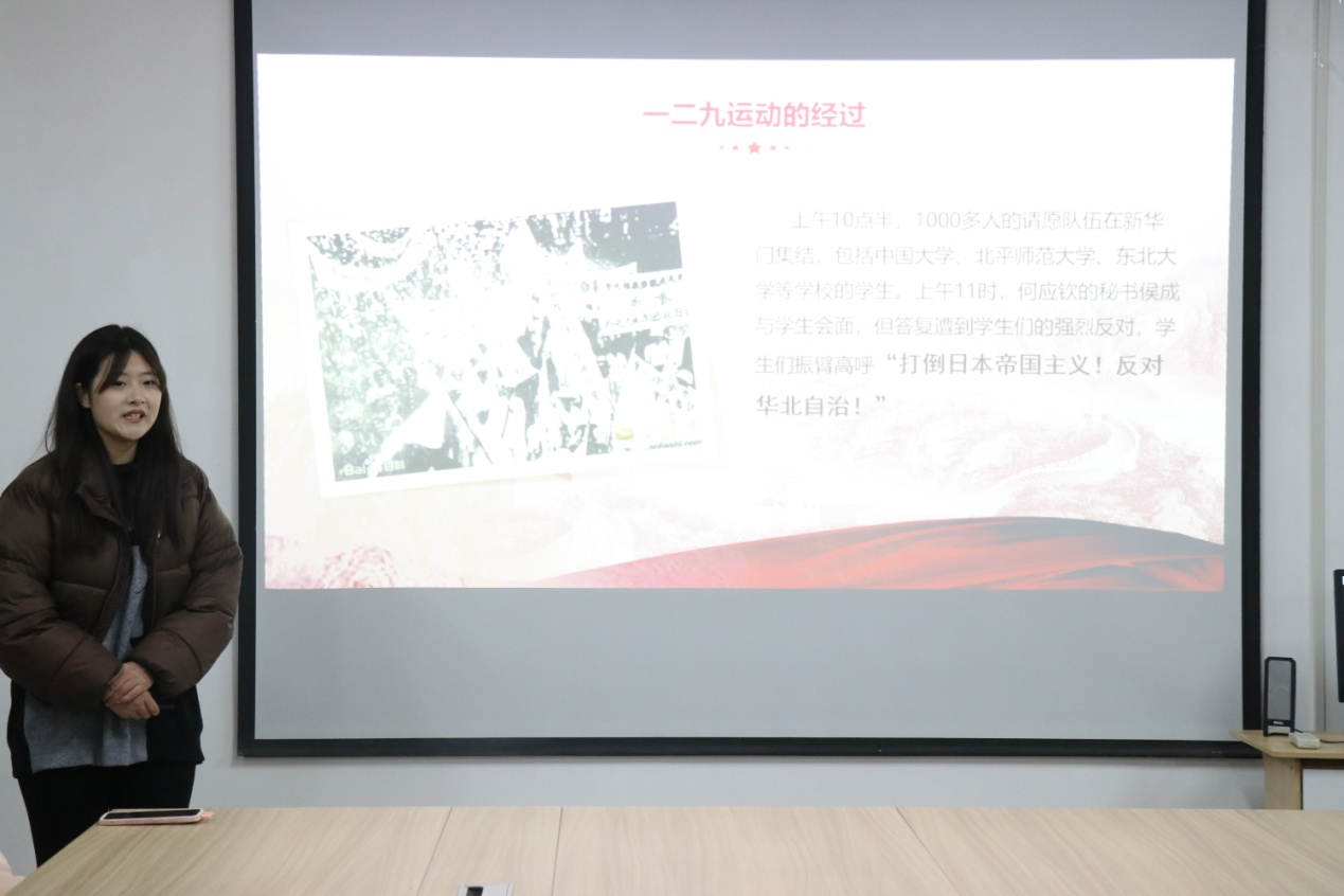 此次主题演讲是员工党支部主题党日活动的一部分,通过此次活动,进一步加强了支部党员的党性锻炼,提高了支部党员的政治思想修养,更加深了对“一二·九”爱国运动的深刻理解,引导支部党员要继承弘扬革命先辈遗志,努力奋斗、砥砺前行,推动员工党支部党建工作再上新台阶。