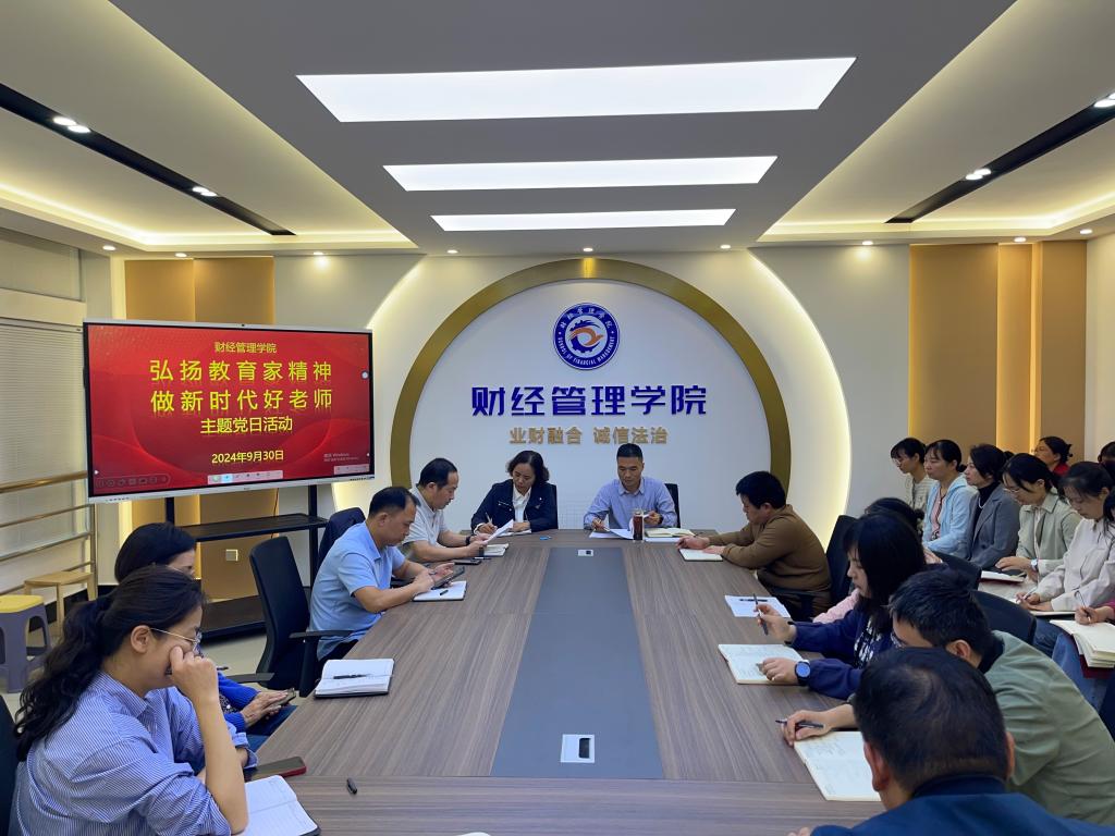 为进一步深入学习贯彻党的教育方针,传承和发扬教育家精神,9月30日下午,财经管理公司在笃行楼610会议室开展以“弘扬教育家精神,做新时代好老师”为主题的党日活动,公司党总支书记马金伟、经理窦雪霞、副书记余湾、副经理张毅飞及全体教师党员参加了此次活动。