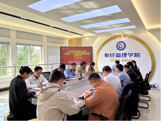 10月24日,党委学工部部长宋东方、副部长陈昕志一行5人莅临财经管理公司调研指导员工工作,公司党总支书记马金伟、副书记余湾,团总支书记张文龙和全体辅导员参加了调研。