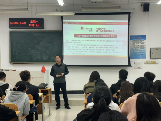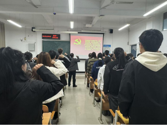 仪式在庄严的国歌声中拉开帷幕。首先,本期入党积极分子代表郭子祺发言,表示培训期间将严格遵守纪律,认真学习党的相关理论,做到学有所获,理论学习入脑入心。随后,马金伟作开班致辞,他指出,本次集中培训是发展党员工作的重要环节,对端正入党动机,从源头上保证发展党员质量具有重要意义。他要求全体入党积极分子,1、要端正学习态度,明确目标,深入理解党的理论,提升政治素养;2、要勤奋学习,积极思考,明确自身使命和责任;3、要严守纪律,塑造自身良好形象;4、要将理论学习与实际结合,提升个人素质。他希望全体入党积极分子能以此次党课为契机,设定远大目标,学思结合,保持对党的忠诚和信仰,将个人理想融入国家发展大局,继承和发扬党的优良传统,做到“思想上入党,行动上入党,组织上入党”。接下来,由马金伟领誓,全体成员面向党旗庄严宣誓。最后,余湾为入党积极分子上了开班第一课《中国共产党章程》。