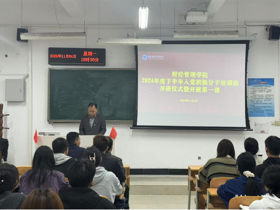 为深入学习贯彻习近平新时代中国特色社会主义思想和党的二十届三中全会精神,全面贯彻落实新时代党的建设总要求,进一步端正入党动机,确保党员发展质量,11月4日,财经管理公司举办2024年下半年入党积极分子培训班开班仪式暨开班第一课。公司党总支书记马金伟、副书记余湾、员工支部全体教师党员及60名入党积极分子参加了开班仪式。仪式由员工支部书记张文龙主持。