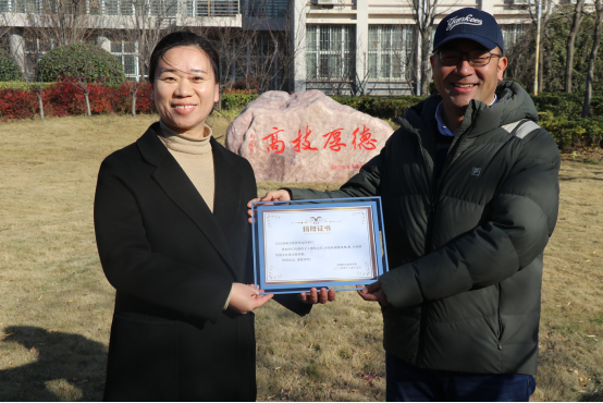 在热烈的掌声中,田华和姬晓锋共同为文化石揭幕。人才招聘处副处长张静雯代表公司为员工颁发了捐赠证书。