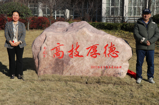 12月15日上午,“德厚技高”文化石捐赠仪式在公司明德楼前明湖广场举行。公司党委副书记、工会主席田华、人才招聘处副处长张静雯、经济管理公司党总支书记马金伟、副书记韩雪平、控制工程公司副经理马会杰、2001级电子商务专业部分员工和部分师生代表参加了仪式。仪式由马金伟主持。