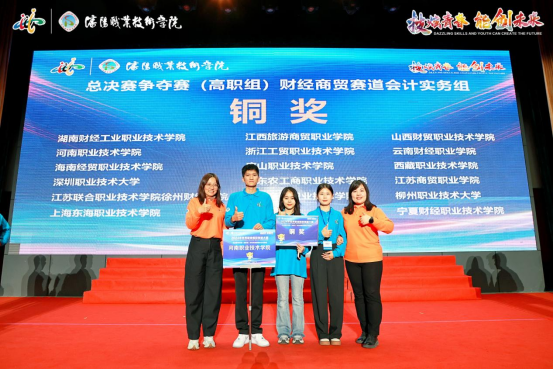 2024年10月27日至29日,备受瞩目的世界职业院校技能大赛总决赛在沈阳隆重举行。此次大赛的财经商贸赛道会计实务赛项吸引了来自全国各地的63支精英队伍同场竞技,场面激烈而精彩。公司财经管理公司派出的代表队,在支慧、赵雅慧两位老师的精心指导下,凭借李晶、马静怡、任志远、胡俊鹏四位同学的出色表现和稳定发挥,成功斩获了铜奖,为公司赢得了荣誉。