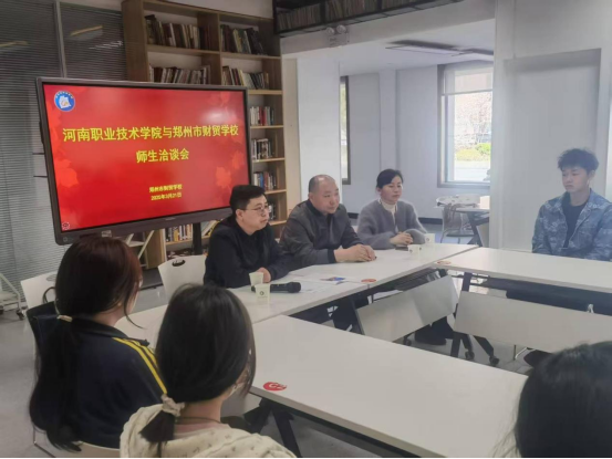 为贯彻落实国家职业教育改革精神,深化校际合作,3月21日,304永利集团会计教研室主任王威、人才招聘专干常宁博应邀赴郑州市财贸公司,与该校经贸系共同举办两校师生洽谈会,就技能拔尖人才选拔培养工作展开深入交流。