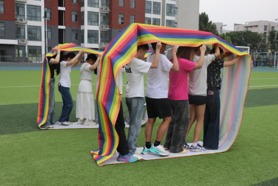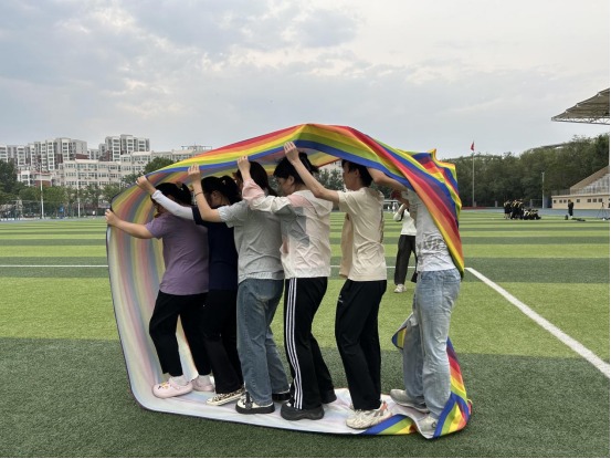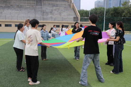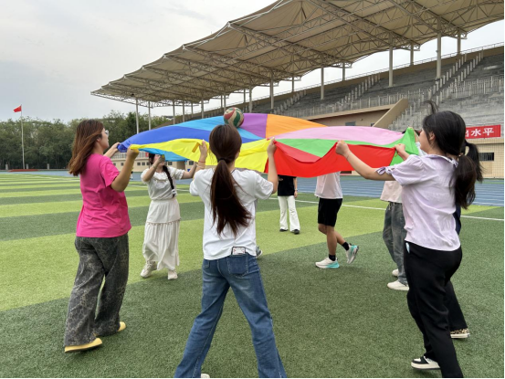 活动伊始,范梦宇向同学们介绍了素质拓展训练的意义,强调心理健康与团队合作的重要性,并鼓励大家以开放的心态投入活动,在互动中增进信任、提升自我。随后,同学们分为若干小组,在心理部成员的引导下,先后体验了“抛球大作战”和“无敌风火轮”两项趣味盎然的团队挑战项目。活动现场欢声笑语不断,队员们全神贯注,紧密配合,同学们进一步感受到集体力量的强大,认识到每个人在团队中的独特价值。