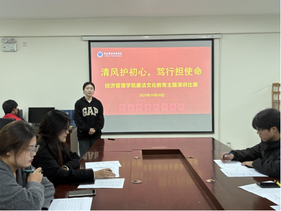 为深入学习贯彻全面从严治党要求,大力弘扬廉洁文化,引导广大青年员工树牢廉洁自律意识,10月30日,304永利集团在笃行楼625成功举办廉洁文化教育主题演讲赛。此次活动得到全院员工积极响应,吸引了来自各专业的同学同台竞技,他们以铿锵之音传递廉洁理念,以真挚感悟诠释清风正气,为现场观众呈现了一场兼具思想性与感染力的廉洁文化盛宴。
