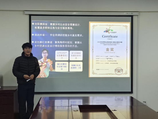 比赛现场,选手们以饱满的激情诠释职业追求,用严谨的逻辑拆解发展路径,凭扎实的专业知识支撑规划构想。既有紧扣“双循环”发展格局,深耕跨境电商领域的“外贸运营经理成长路径”,也有扎根乡村振兴主战场,聚焦“乡村低空经济发展计划”的务实构想。从跨境赛道的全球视野到乡村振兴的本土情怀,每一份规划都蕴含着当代青年将个人理想融入国家发展洪流的赤子之心,让爱国情怀在职业规划中落地生根;从对自我优势的精准剖析到对职业风险的冷静预判,从短期目标的细致规划到长期发展的宏伟构想,选手们的精彩表现不仅展现了过硬的专业素养,更传递出当代青年脚踏实地、逐梦前行的精神风貌,赢得了现场观众一次又一次发自内心的热烈掌声。经过激烈角逐,最终评选出一等奖3名、二等奖4名、三等奖6名。