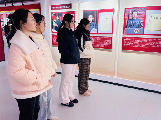 同学们首先循着历史脉络依次参观“中国共产党党史”“中华人民共和国国史”“改革开放史”“社会主义发展史”“中华民族发展史”等五大主题展区。从鸦片战争后的救亡图存到新时代的伟大变革,从社会主义建设的艰辛探索到改革开放的波澜壮阔,珍贵的历史图片、生动的文献资料、让青年学子仿佛穿梭于历史长河。同学们在沉浸式体验中深刻感悟党的百年奋斗历程与中华民族的复兴之路。大家纷纷表示,作为新时代青年,要以史为鉴、以史明志,从“五史”学习中汲取信仰力量、筑牢思想根基,在推进中国式现代化中主动担当作为,书写无愧于时代的青春篇章。