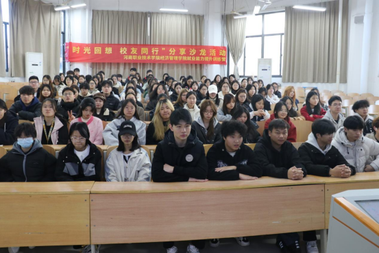上午9时,“时光回想·员工同行”分享沙龙率先拉开帷幕。公司特别邀请了两位深耕行业多年、业绩斐然的优秀员工,以鲜活案例与前沿洞察赋能青年成长。两位员工结合自身十余年的职场深耕经历,从职业选择的初心、行业发展的趋势、职场瓶颈的突破等多个维度展开分享。其中,深耕互联网行业的余晓庆以“从校园到职场的转型密码”为题,详细拆解了老员工从理论学习到实践应用的衔接要点;河南省国家老员工科技园人力资源总监高昌昌则聚焦“00后职场人的核心竞争力”,针对简历优化、职场沟通等高频问题给出实用建议。分享环节后,同学们踊跃提问,就“跨专业就业的优势构建”“实习经历与职业规划的匹配度”等问题与员工深入交流,现场氛围热烈。