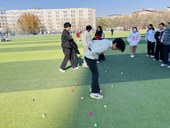 “抖甩公鸡下蛋”项目中,参赛队员腰系装有乒乓球的道具盒,通过肢体摆动将球甩出,夸张的动作引发阵阵笑声。来自2024级工商企业管理专业的李同学刚结束比赛,便笑着说:“看似简单,实则特别考验身体协调性,队友们的加油声让我充满动力。”