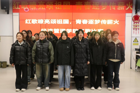 伴随着主持人对“一二·九”运动历史的深情回望,比赛正式拉开帷幕。各班级队伍身着整齐划一的服装,迈着铿锵有力的步伐依次登台——挺拔的身姿是青春的模样,坚毅的眼神则藏着对峥嵘岁月的追思与对脚下土地的赤诚,仿佛八十多年前那群振臂高呼的青年,正以另一种方式诉说着“天下兴亡,匹夫有责”的担当。温情满溢的《紫荆花盛开》诉说着家国团圆的期盼,铿锵豪迈的《没有共产党就没有新中国》诠释着百年征程的真理,承载期许的《明天会更好》寄托着青春奋斗的理想,气势磅礴的《歌唱祖国》激荡着民族复兴的豪情,饱含深情的《我和我的祖国》则将个人情怀与家国大义紧紧相融,一首首经典红歌被同学们演绎得声情并茂、荡气回肠。